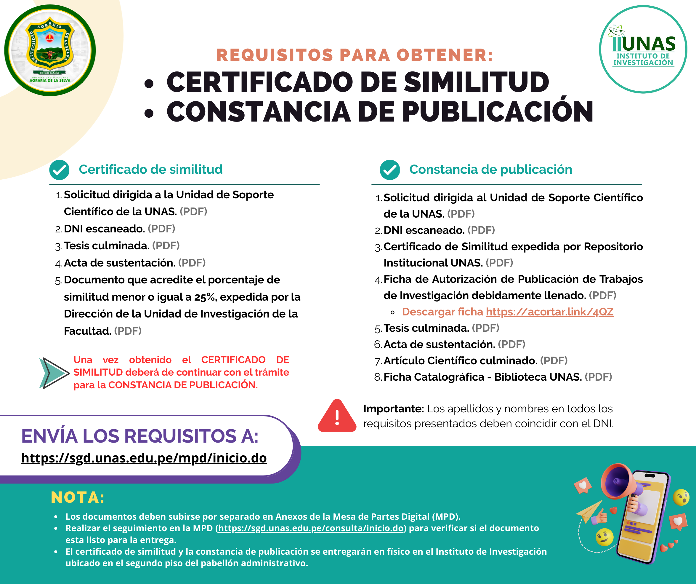 - Envía tus documentos por la Mesa de Partes Digital: https://sgd.unas.edu.pe/mpd/inicio.do